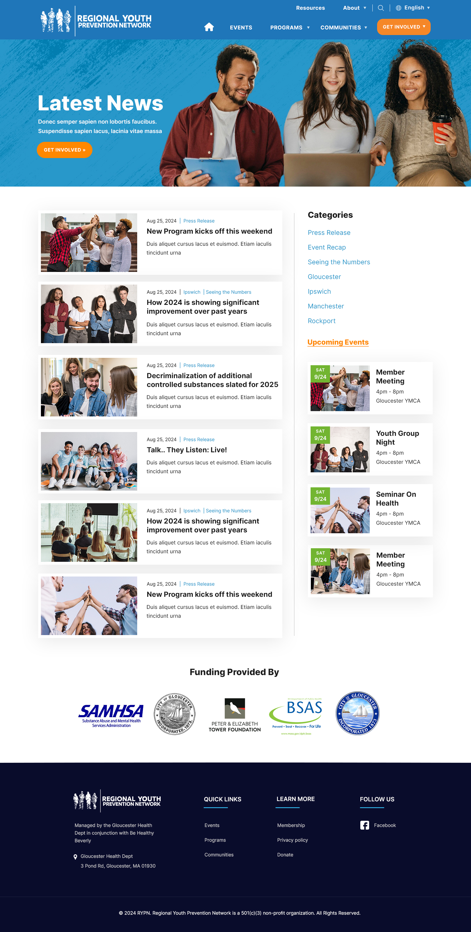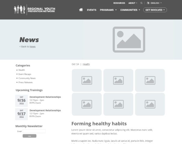 We created a clean, engaging site that highlights RYPN’s mission, programs, and resources, while making important tools and events easy to find and share. The website includes a community calendar, downloadable materials, and multilingual accessibility to better serve the diverse populations they support.