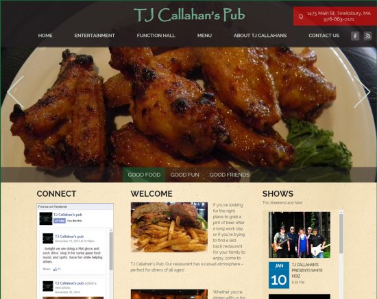 TJ Callahans had not updated their website in several years and wanted a modern, visually strong website. We built them a powerful site with a detailed menu-browsing experience of their food and drinks, as well as customized event widgets powered by ArtistBomb.com’s database.